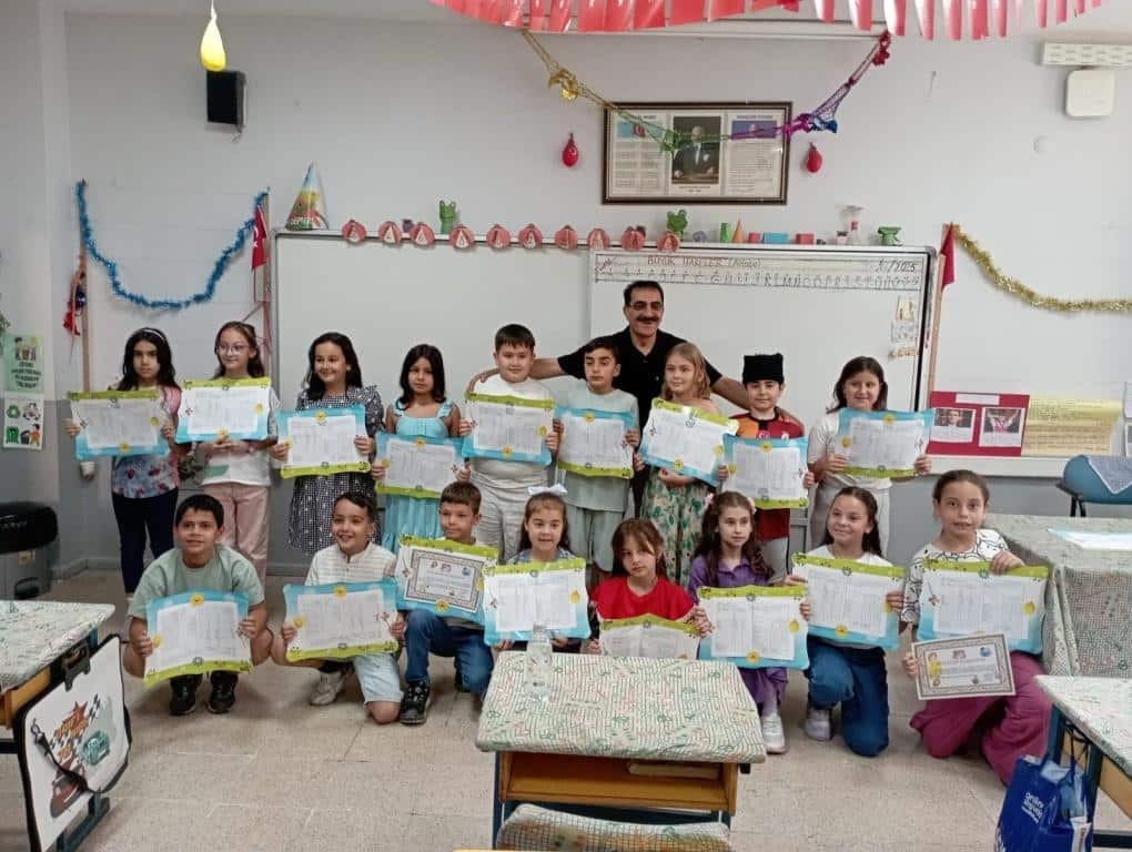 Öğrencilerimiz karnelerini öğretmenlerinden aldı .